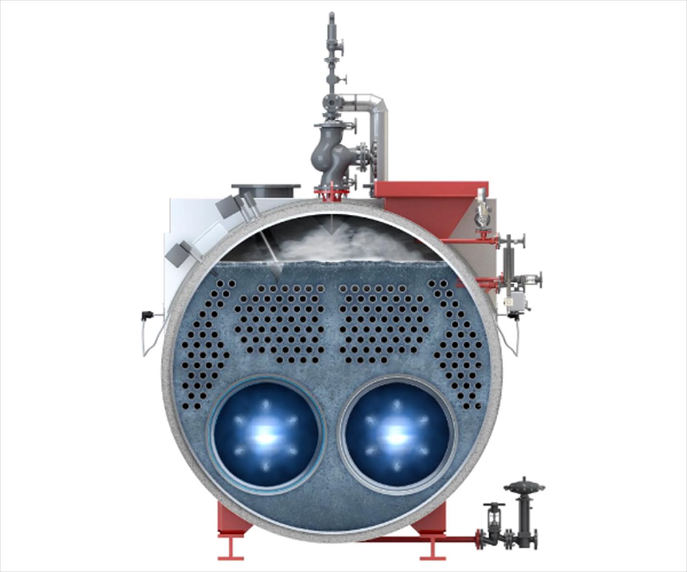 - Double-flame tube boiler for 18,000 to 55,000 kg/h with very high efficiency across the entire power range
